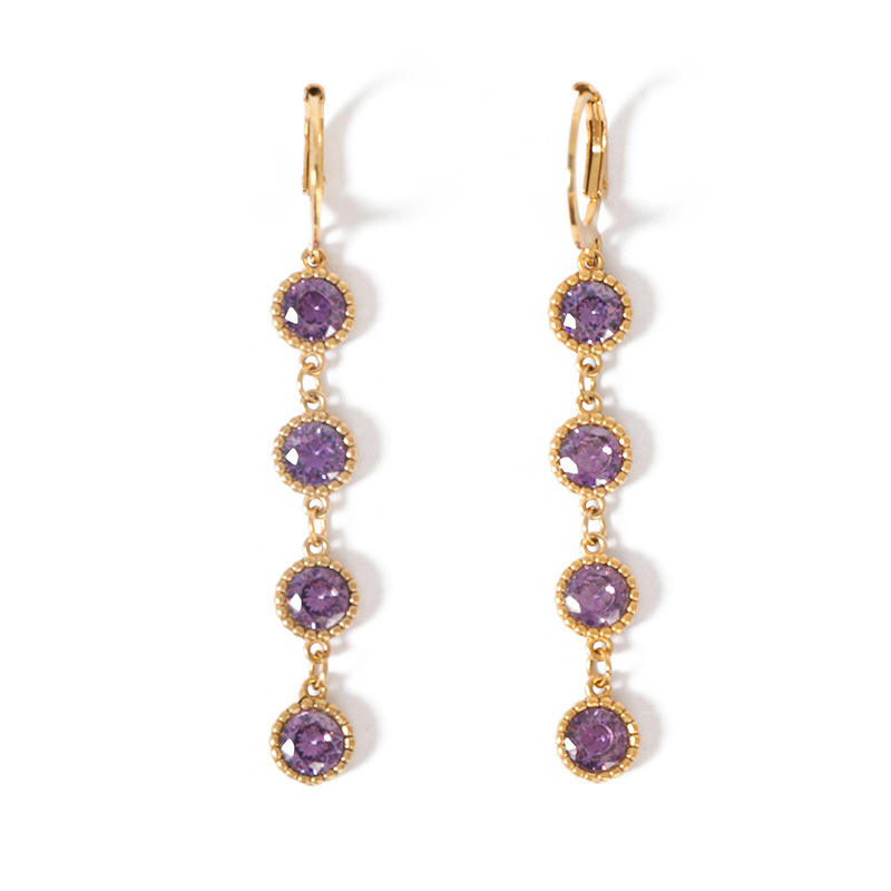 Waterproof 18K Gold Plated Earrings Stainless Steel Small Hoop Earrings Colored Cubic Zirconia Statement Dangle Earrings
