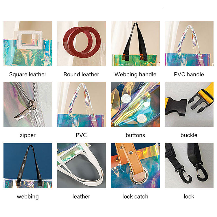Waterproof Beach Tote Holographic Shopping Bag Manufacturers Clear Pvc Plastic Concert Custom Transparent Bags with Logo