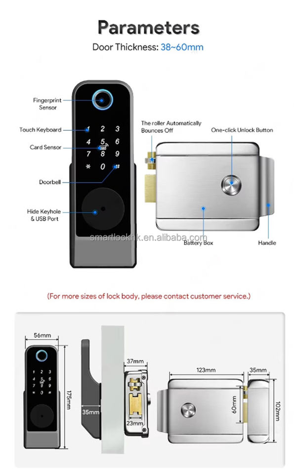 Unlock way:APP +Fingerprint + Password + Card + Key