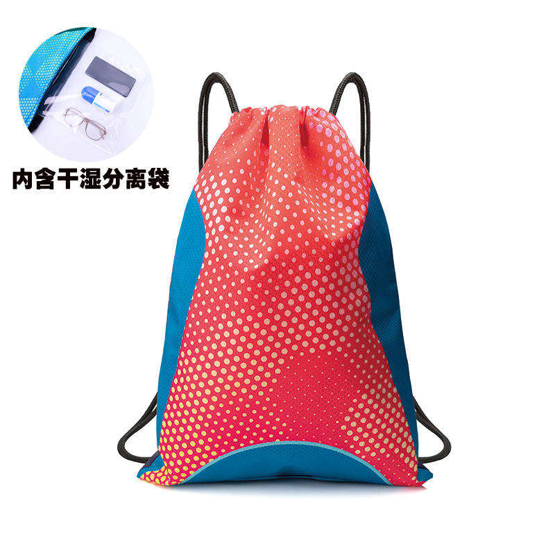 Waterproof Drawstring Backpack with Dry Wet Separation Pocket Vibrant Geometric Print Sport backpack for Gym and Swim women bag