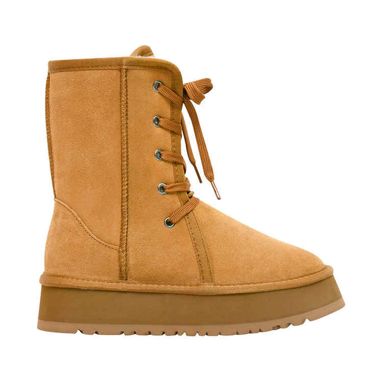 Waterproof Foldable Genuine Leather Winter Boots with Fur Lining Arch Support & Chunky Heels