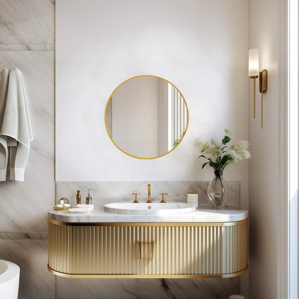 Waterproof Gold Frame Bathroom Mirror Modern Style with LED Lights 3 Color Choices for Wall Vanity