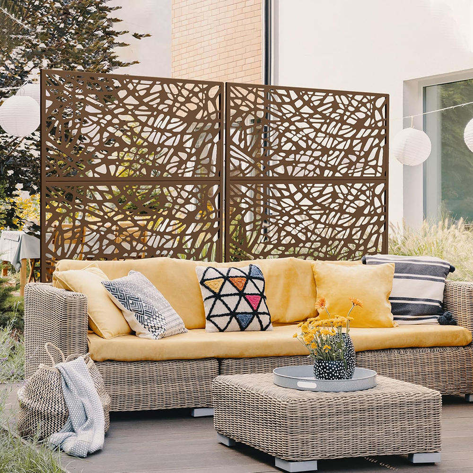 Outdoor Brown Metal Privacy Fence Screen Panels Stand Decorative Freestanding Patio Balcony Backyard Garden Screen Room Dividers