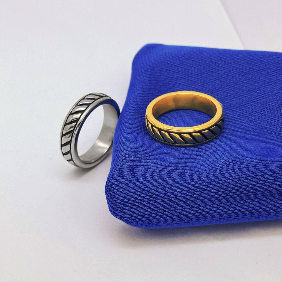 Waterproof Jewelry Rings Wholesale Stainless Steel Men Finger Signet Dome Ring Vintage Black Gold Stripe Rope Ring
