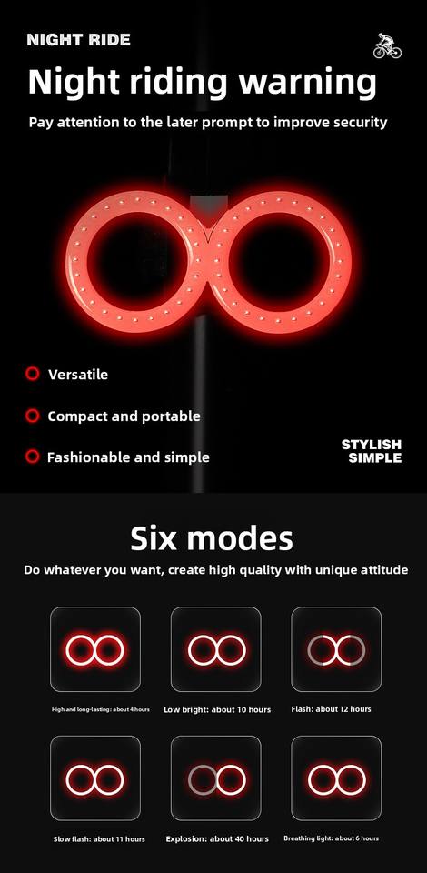 Product Name:Bicycle waterproof warning tail light