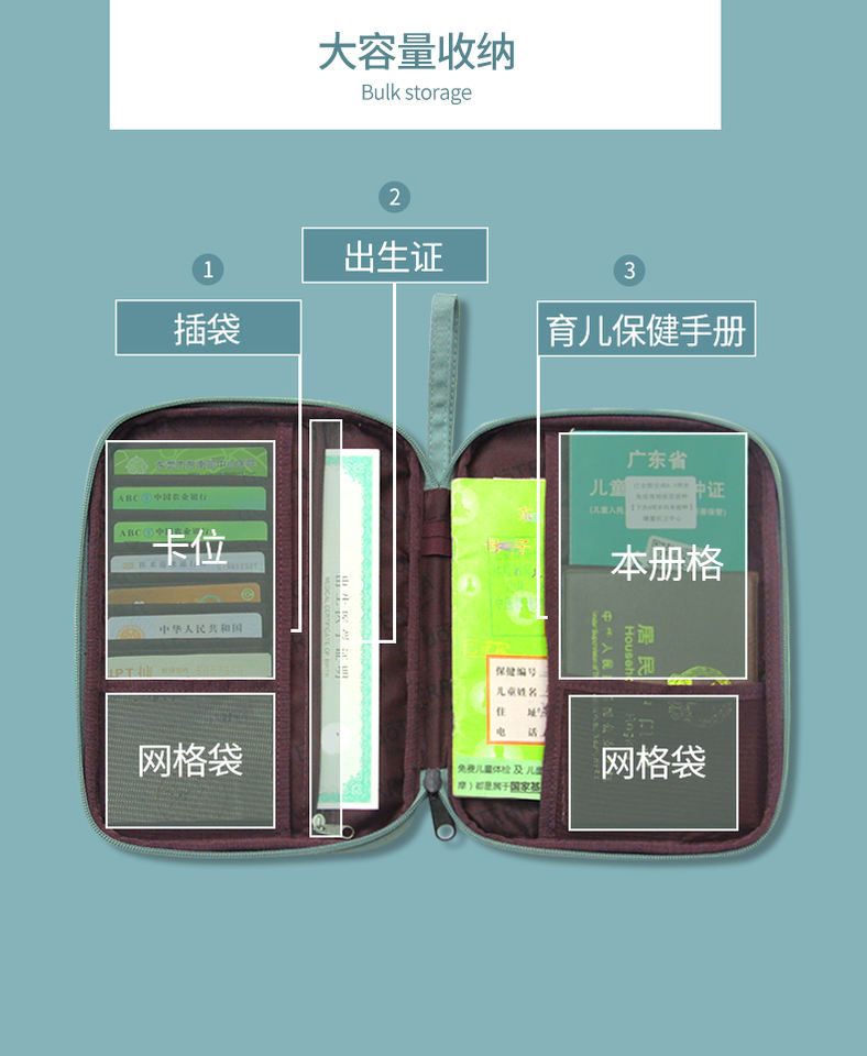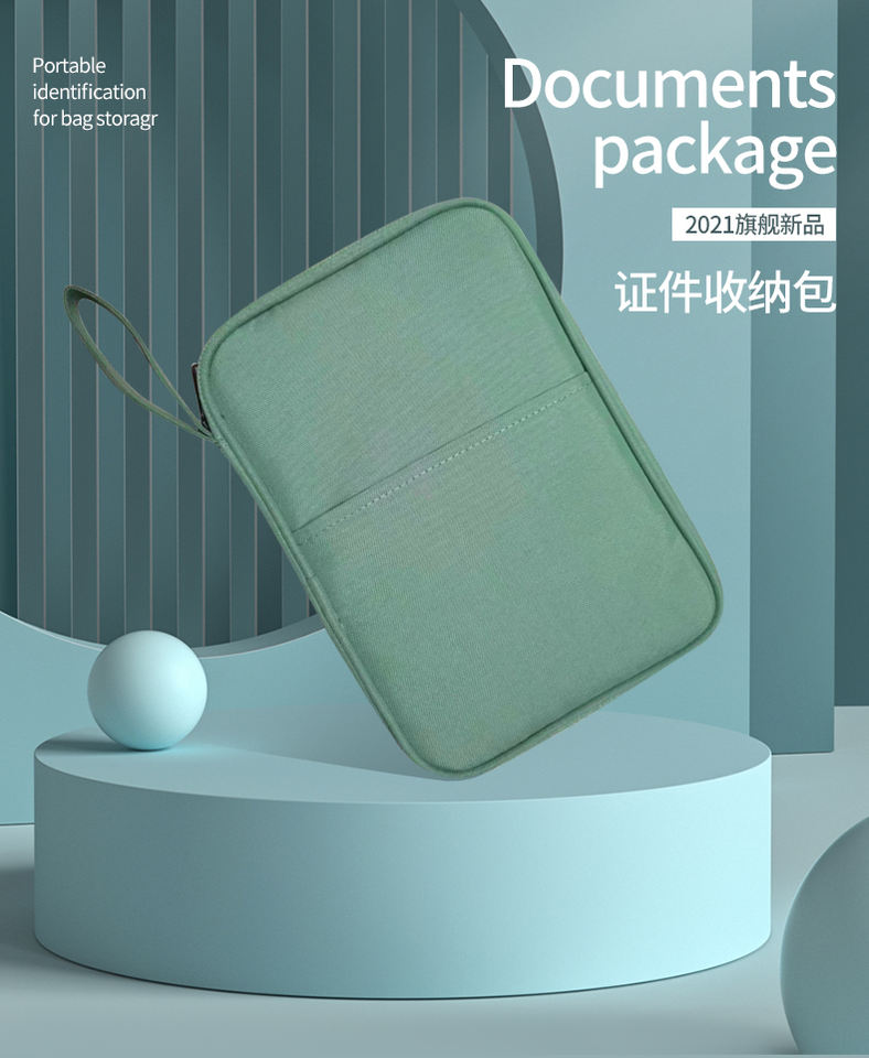 Waterproof Polyester Male Women's Multifunctional Document Package Passport Holder with Paper Clip for Travel