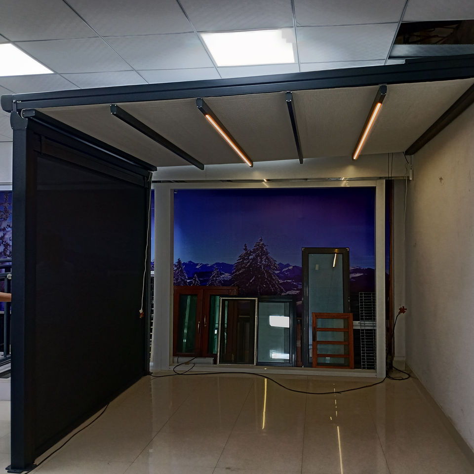 Waterproof Motorized Balcony Patio Retractable Pergola Awnings Roof System with Glass windows