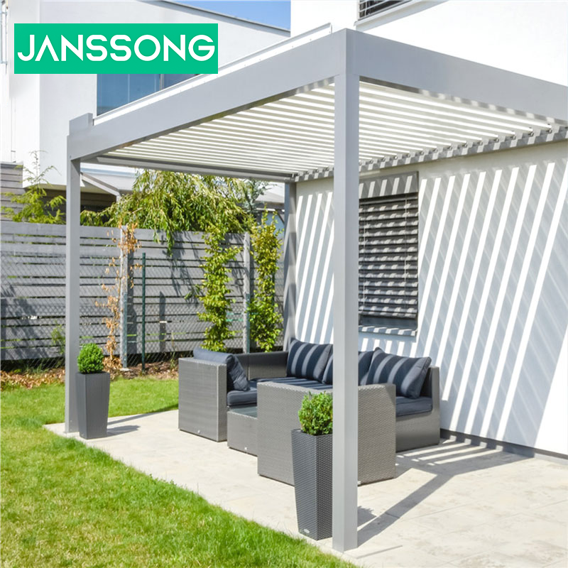 Waterproof PVC Retractable Roof Pergola Canopy Powder Coated Aluminum Wood Plastic Alloy Frame Balcony Arbours Nature Pressure