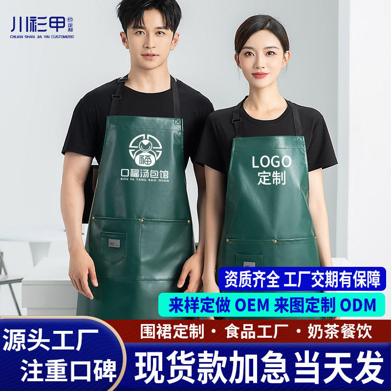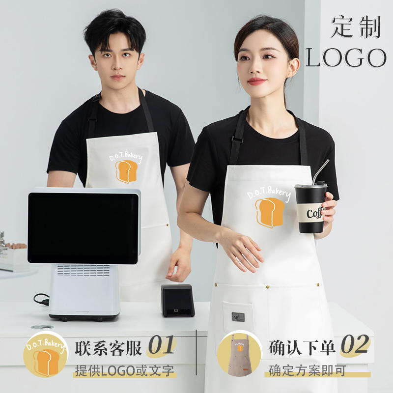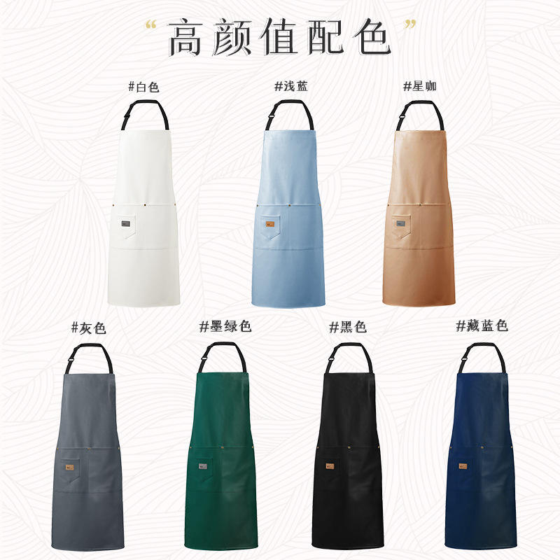 Waterproof Quick Dry Apron Solid Color For Kitchen Bar Staff Restaurant Uniforms With Pocket Heat Transfer Printing