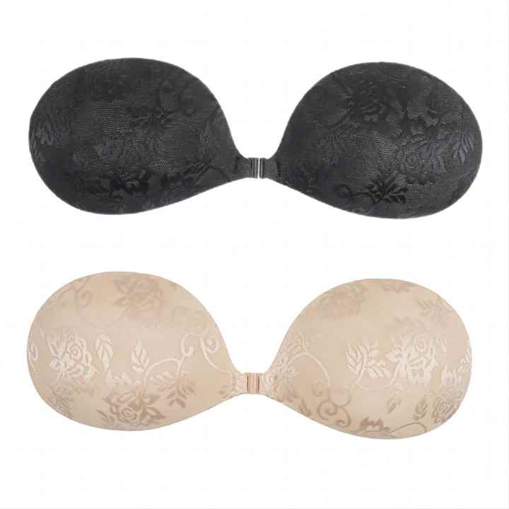 Waterproof Reusable Lace Round Cup Backless Strapless Sticky Nubra Bra Invisible Silicone Push up Self Adhesive Bra for Women