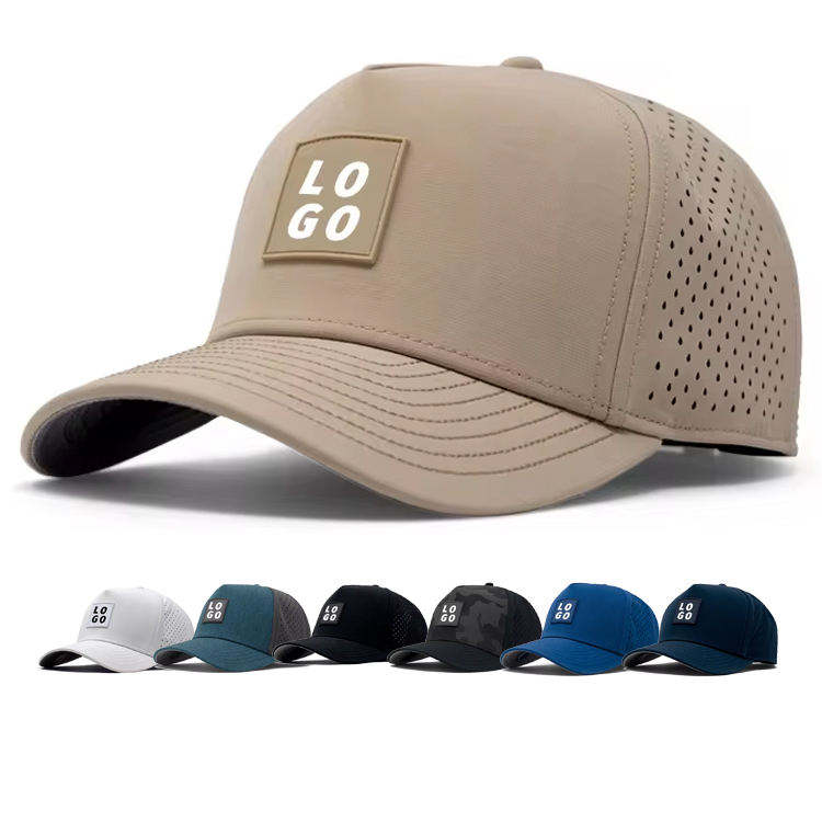 Waterproof Sporty Image Golf Hat 5 Panel High Quality Khaki Custom 3D Embroidered Patch Logo Classic Laser Hole Baseball Cap