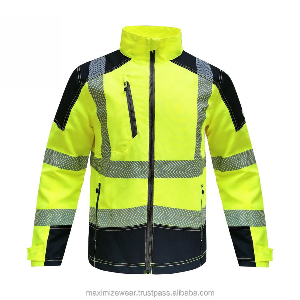Waterproof Sporty Lightweight Canvas Reflective Hi Vis Construction Safety Jacket Men Security Reflective Tape Multi Front