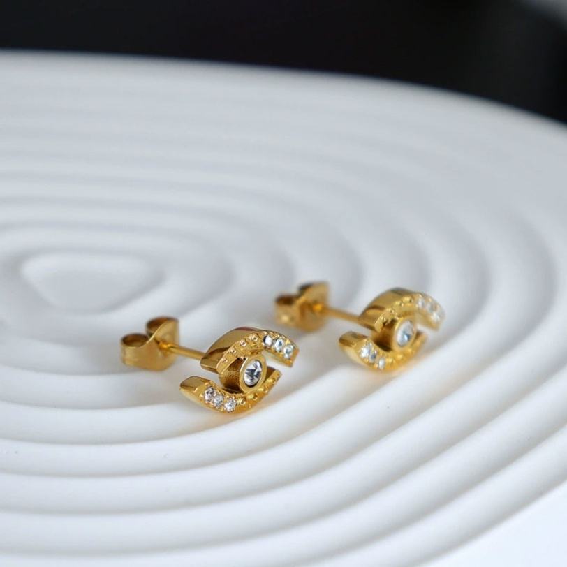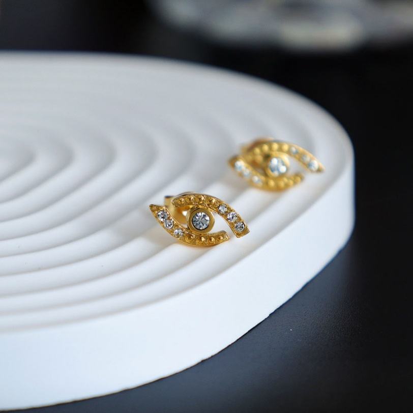 Waterproof Stainless Steel Earrings 18k Gold Plated Fine Stud Earrings Based Diamond Eye Earring for Women Teen Girls