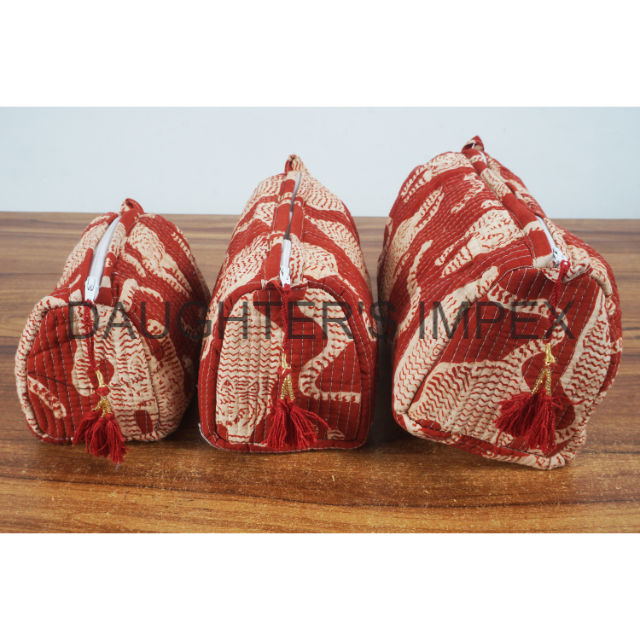 Waterproof Travel Cosmetic Pouch Bag Indian Handmade Cotton Block Print Assorted Makeup Bags Lots of Handmade Cosmetics Cases