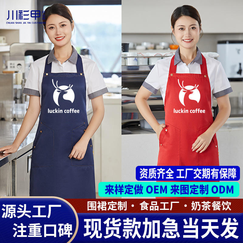 Waterproof Workwear Apron Polyester One Size Restaurant Bar Uniform With Neckband Customizable Logo Printing