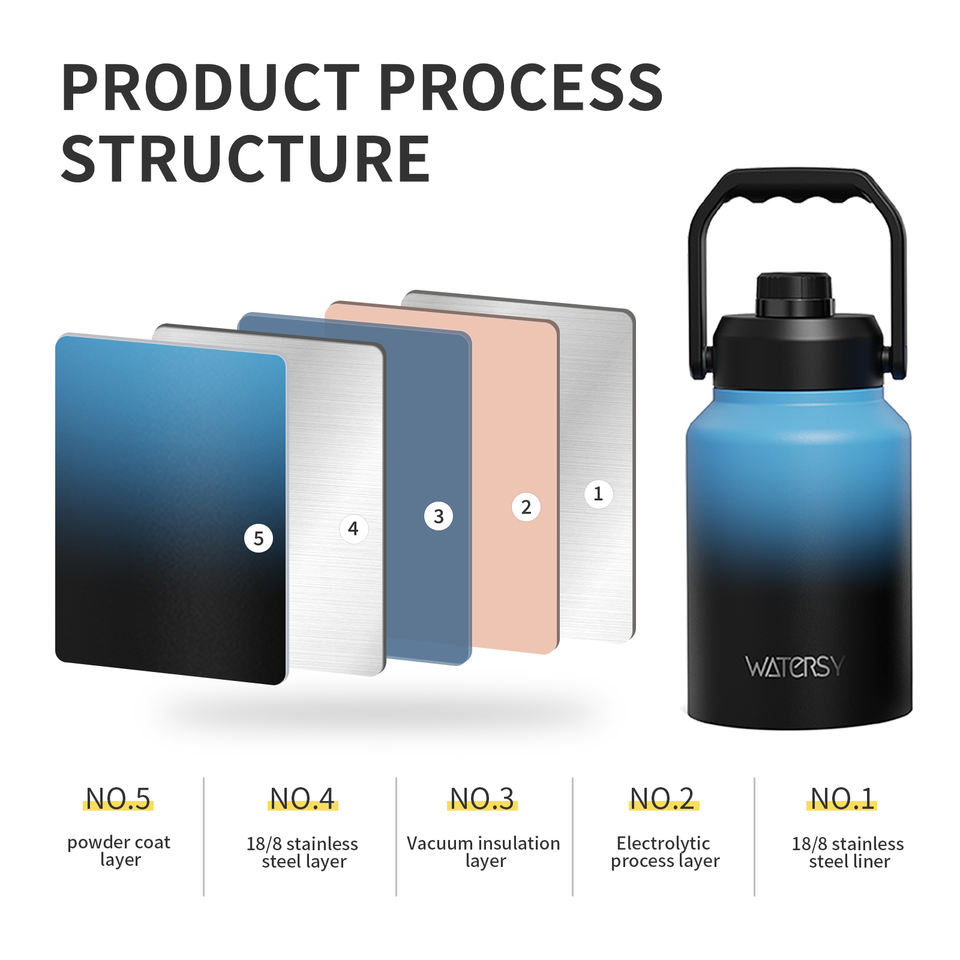 Watersy Custom OEM 64oz/128oz Outdoor Double Wall Vacuum Insulated Stainless Steel Eco-Friendly Leak-Proof Wide Mouth Tumbler