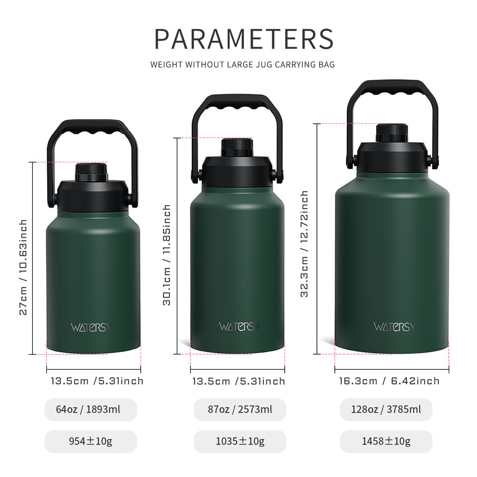Watersy OEM ODM 64oz/128oz Stainless Steel Double Wall Vacuum Tumbler Straw Eco-Friendly Wide Mouth BPA-Free Leak-Proof 12-24hr