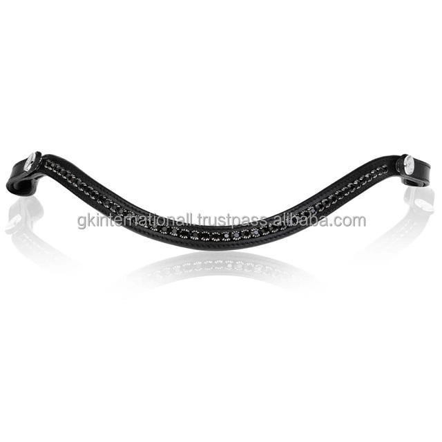 Wave Shape Black Shining crystals diamante chain inlaid Empty Channel Padded Leather Horse brow band in full cob sizes