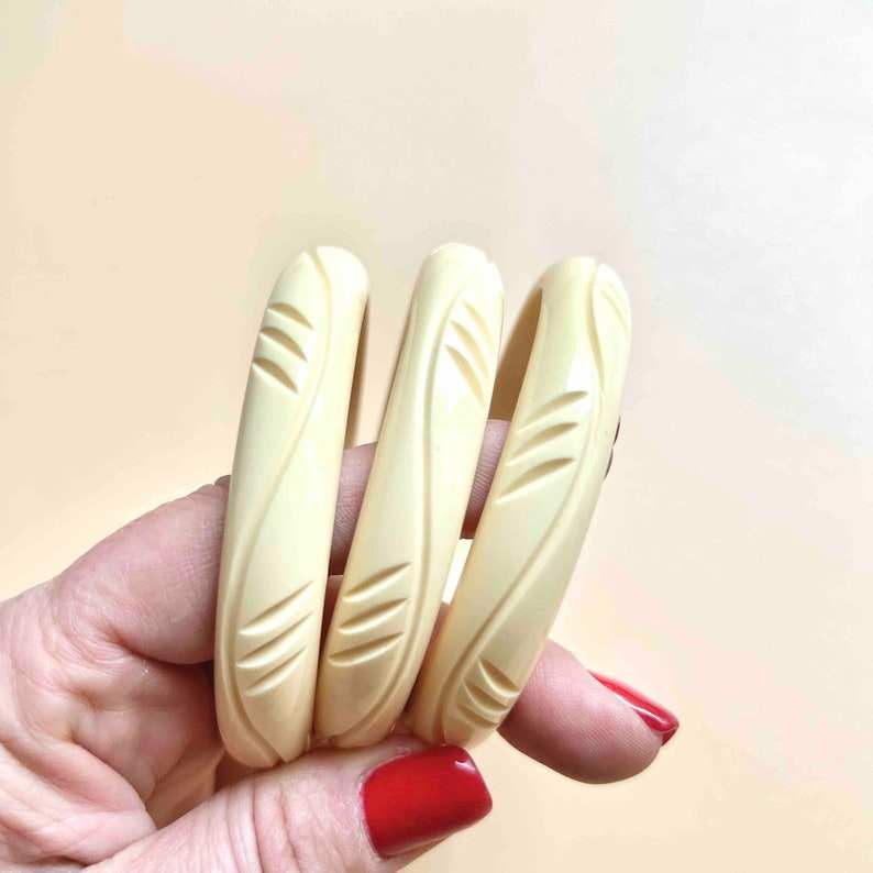 Waves Cream Resin Fakelite Bracelet, Vintage Carved Bakelite Style Bangle, Retro Rockabilly Jewelry |