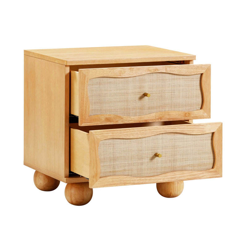 Wavy Wood & Rattan Nightstand
