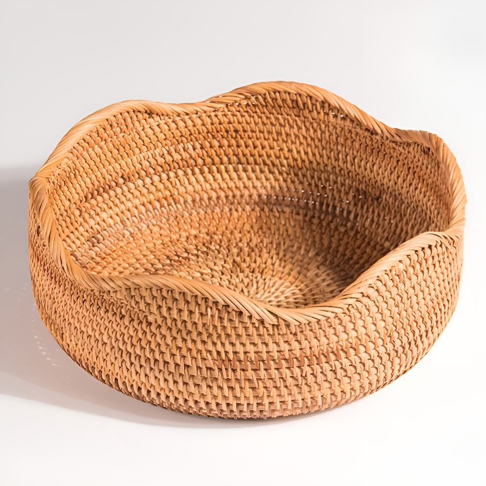 Wavy edge rattan pantry basket nesting container baskets dining table decor cheapest cost organizer