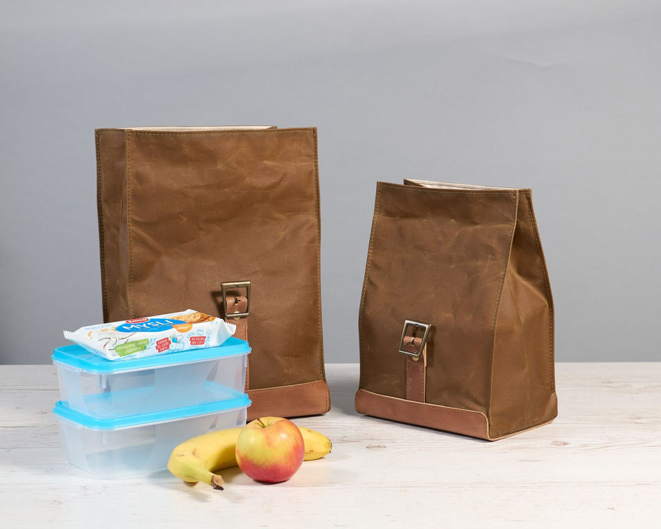 Waxed Canvas Lunch Bag Zipper Closure Waterproof Box Leather Handle Strap Personalized Gift for Women Men Back School LCLB-0007