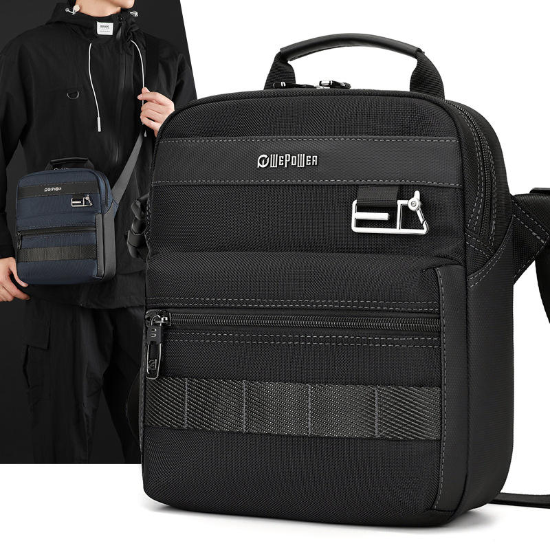 WePower Men's Large Capacity Crossbody Bag Nylon Durable Solid Color Embossed Logo For Commute And Travel