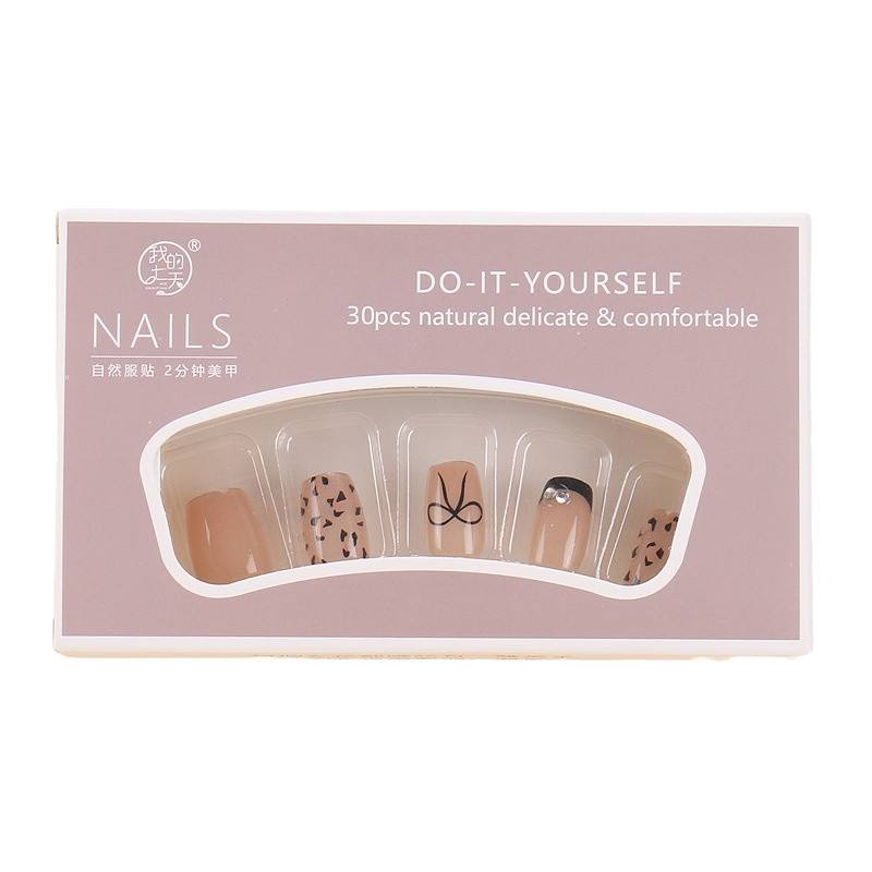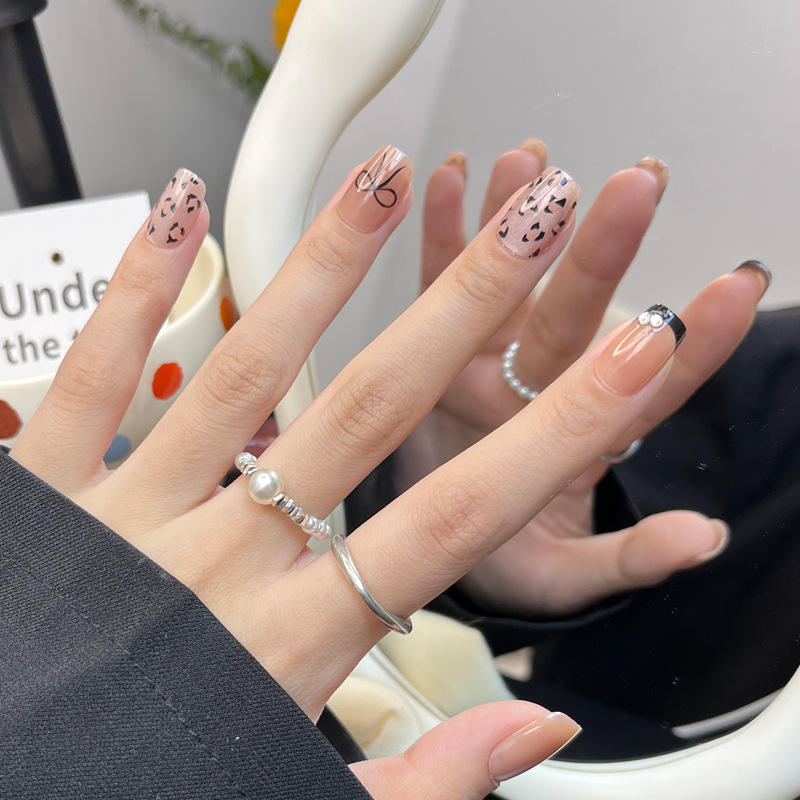 Wearable High-End Autumn Xiaohongshu Hot-Selling Tips Cat Eye Leopard Print French Fake Nail Stickers Finished Product
