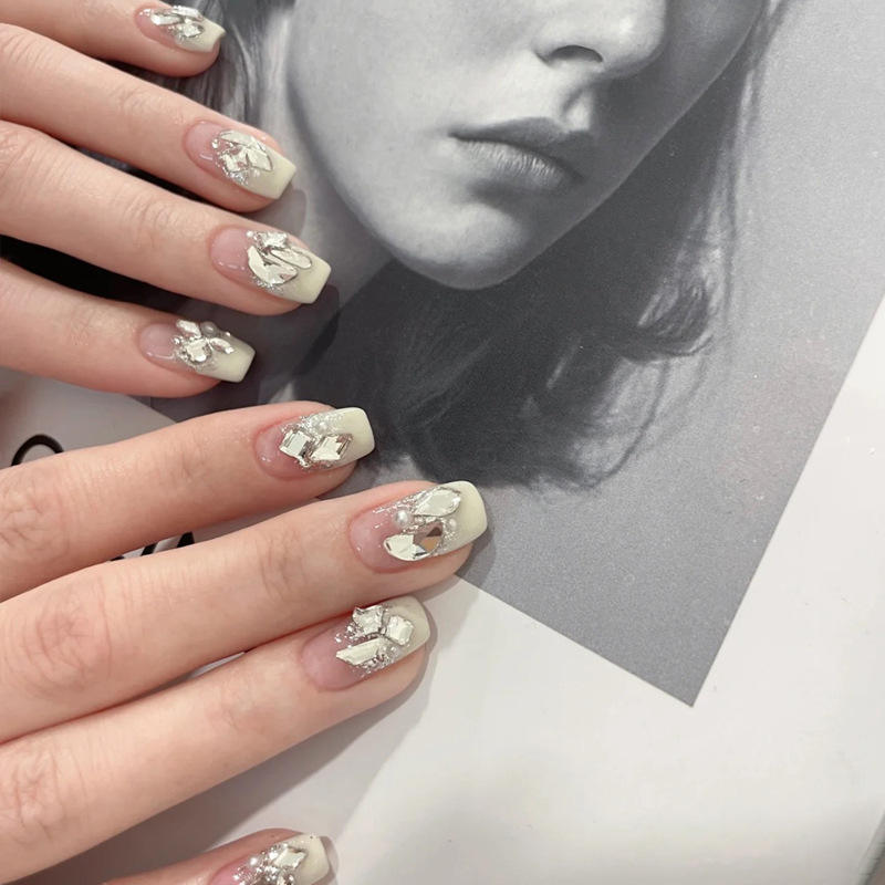 Wearable Nails Wholesale Xiaohongshu Hot-Selling Tips Medium-Length Glitter Black Bow Detachable Nail Stickers
