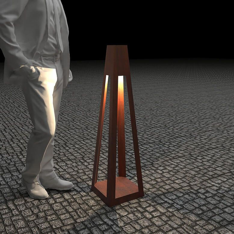 Weathered Corten Steel Art Deco Waterproof LED Bollard Lighting for Garden and Outdoor Use