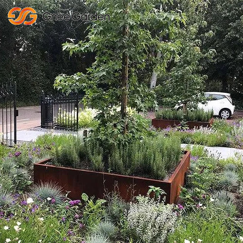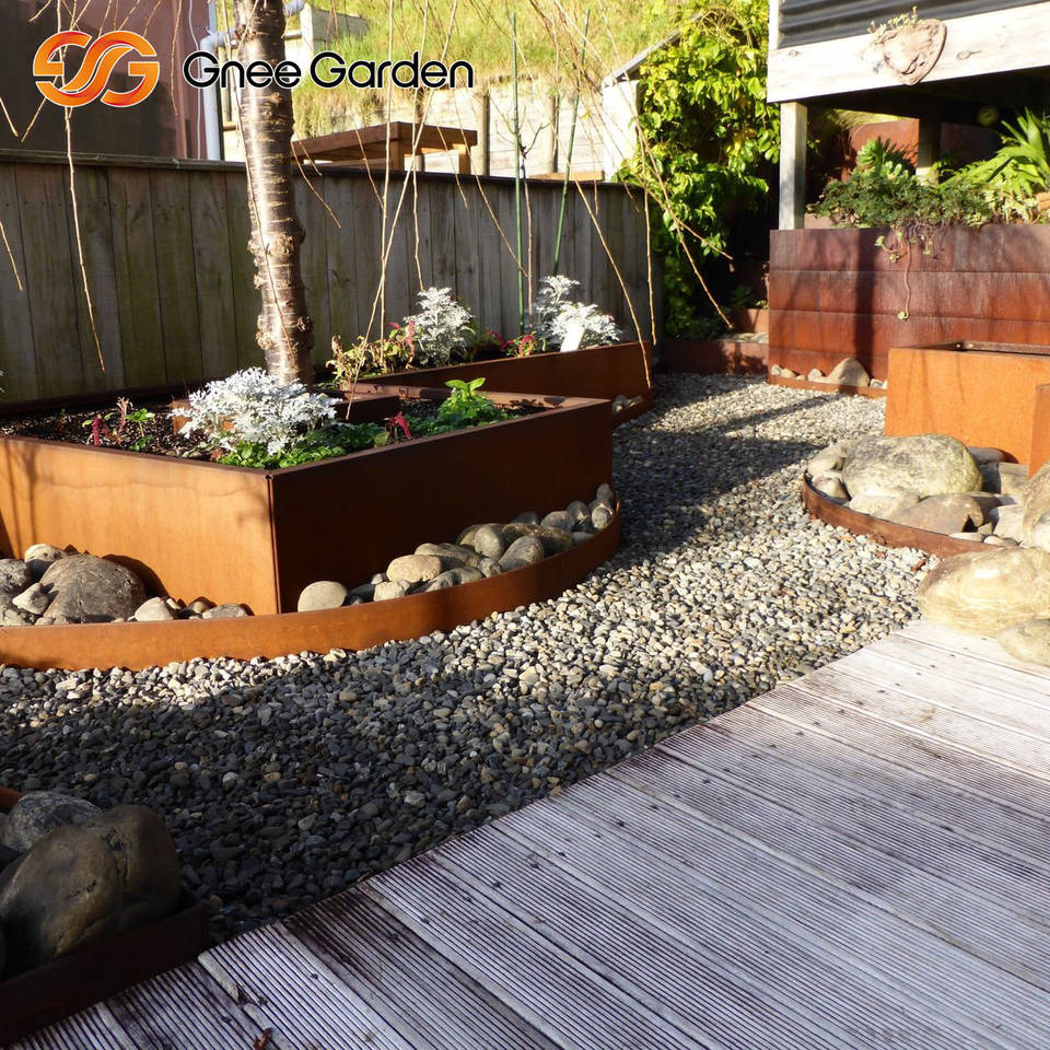 Weathered Corten Steel Raised Garden Bed Zero Flex Rectangle Design