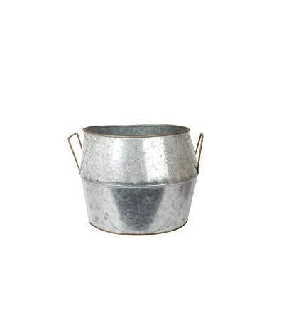 Weathered look galvanized metal hanging flower pot for balcony railing porch setup or vertical decorative floral ideas