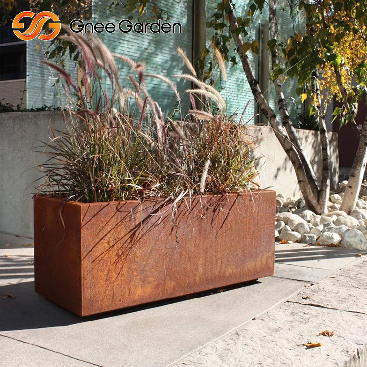 Wholesale Square Section Weathering Steel Floor-Standing Metal Flower Pot with Base Drainage Hole Planters & Pots