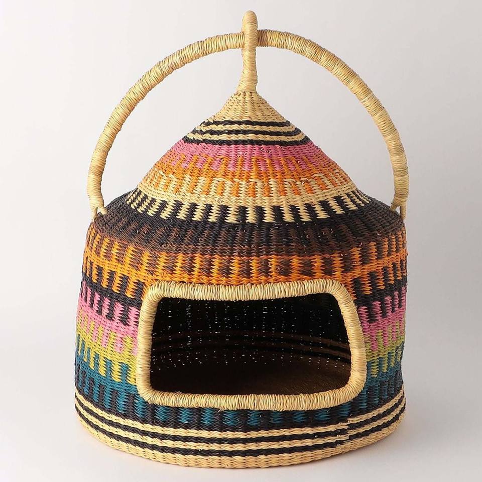 Weaving seagrass cats bed house kitten villa basket hot selling cat products raffia tent nest