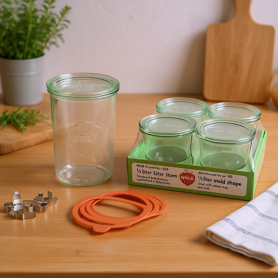 Weck Round Rim Jar 100 Half Liter Mold Shape 4 Pack With Rubber Rings And Clips