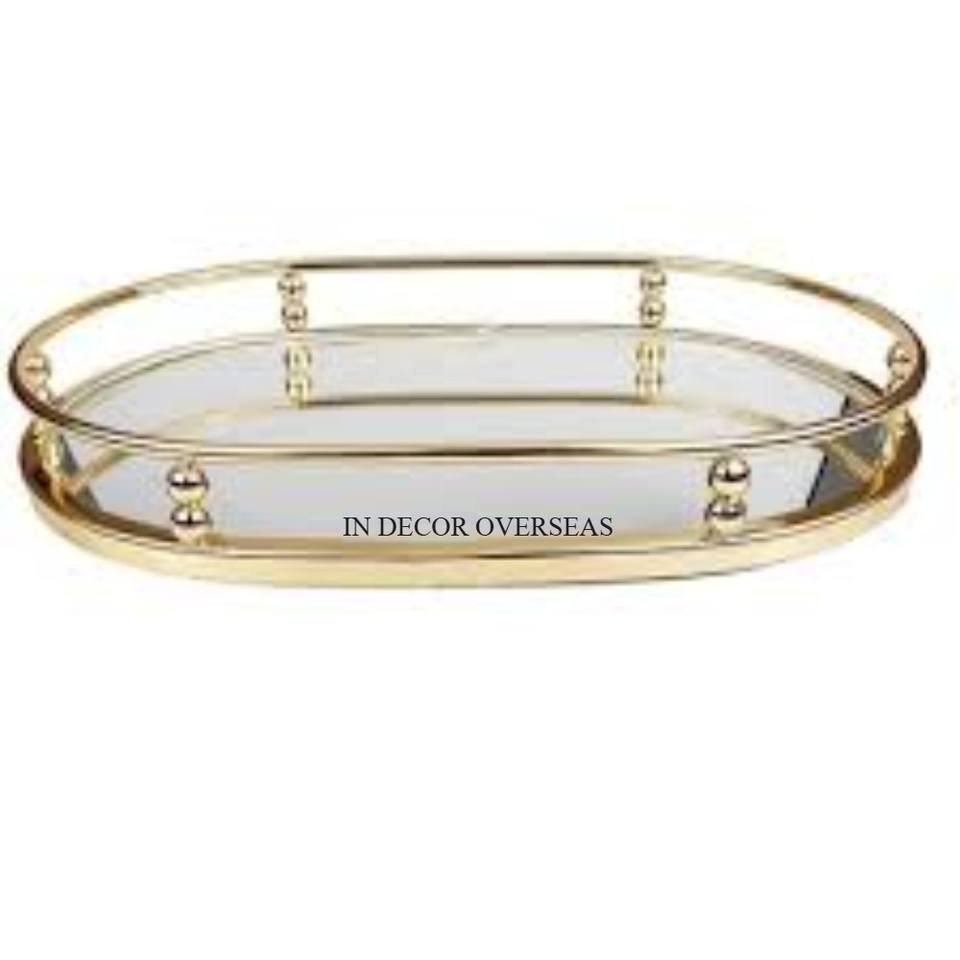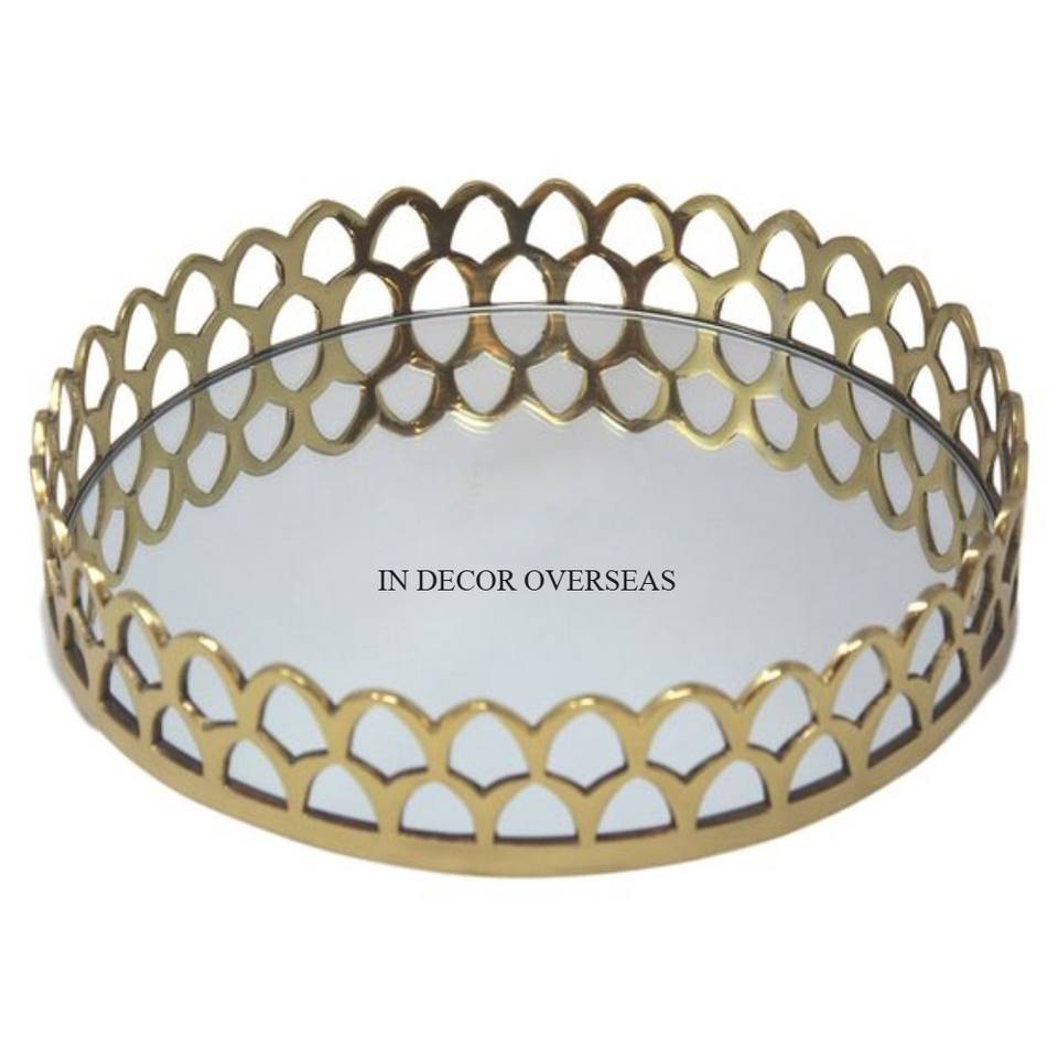 Wedding And Parties Table Centerpiece Food And Sweets Serving Mirror Tray With Gold Plated Metal Unique Designer Borders Supply