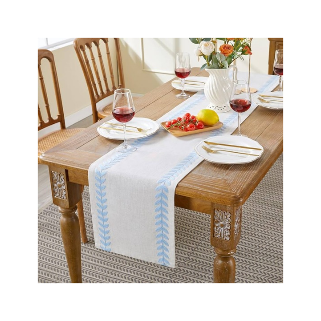 Wedding Banquet Exclusive 100% Cotton Embroidered Table Runner 230 GSM 320 TC Twill Weave Wrinkle Resistant OEM ODM India Export