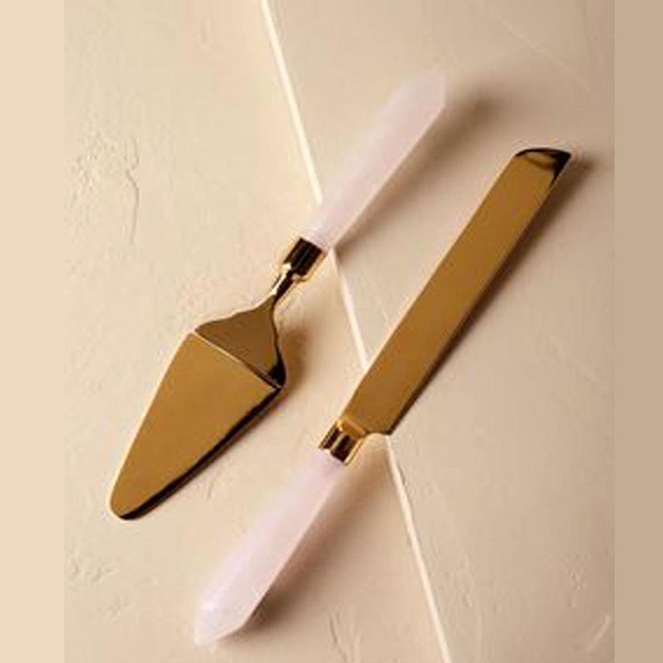 Wedding Cake Server Set Gold Check Design Handle Cake Serving Set Stainless Steel and Brass Cake Cutter and Server