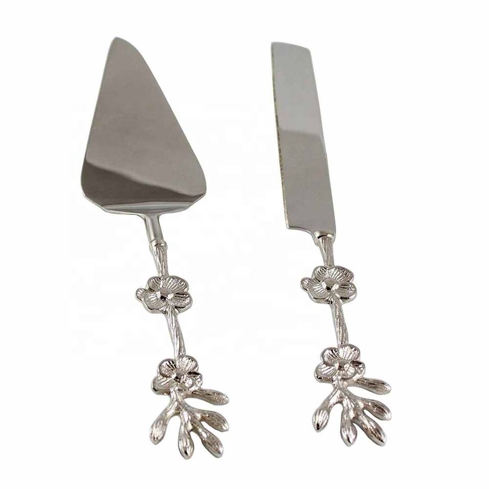 Wedding Cake Server Set Stainless Steel Silver Polished Leaves with Flower Handle Cake Serving Set Stainless Steel Flatware Set