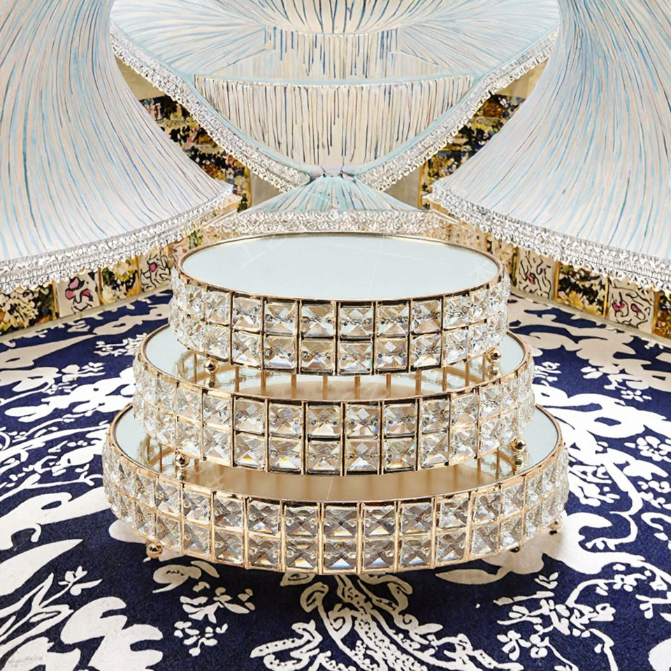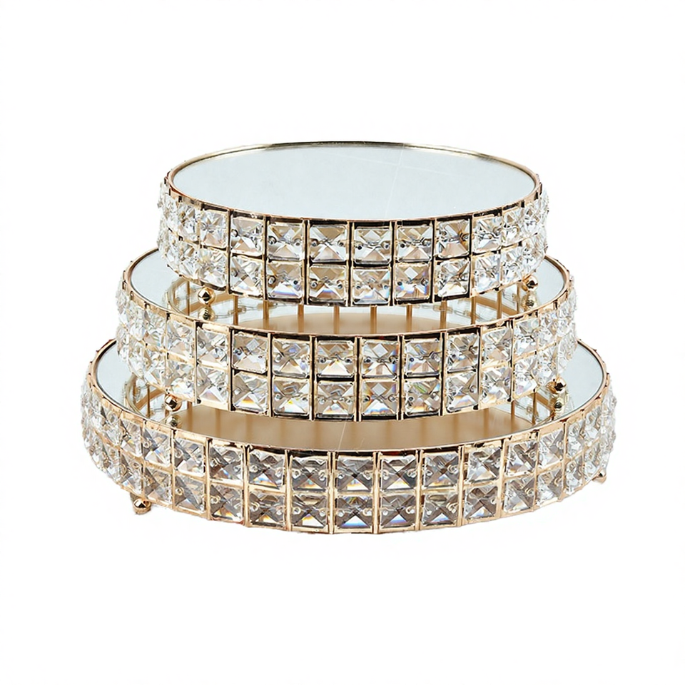 Wedding Cake Stand Gold Silver 3pcs/set Crystal Mirror Metal Floor Flower Stand Eco-Friendly Round Shape for Wedding Decoration