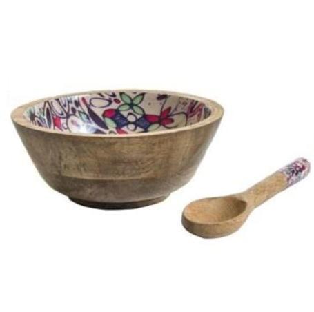Wedding Catering Home Hotels and Restaurants use Mango Wood Food Serving Bowl Enamel Printed Handcrafted Wooden Bowl
