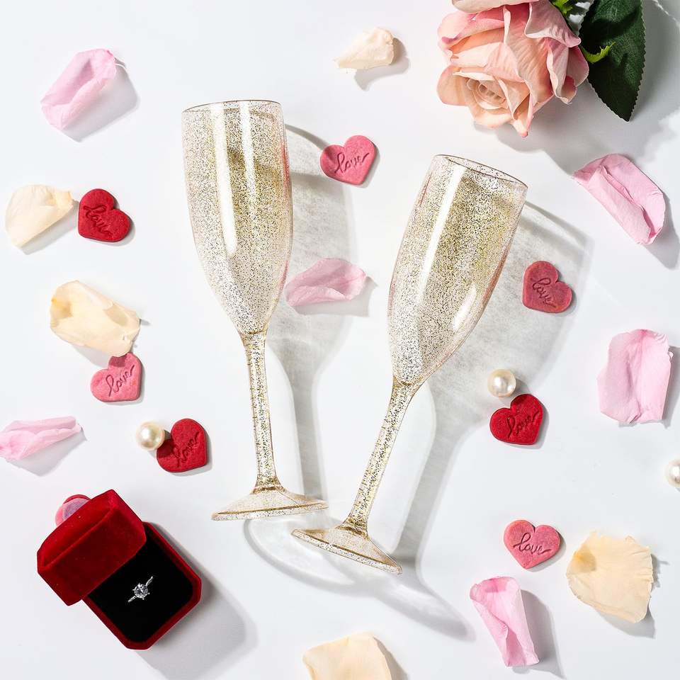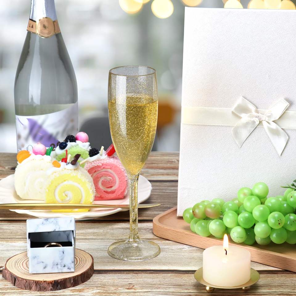 Wedding Christmas Plastic Champagne Flutes Clear and Gold Champagne Pure Cups Shatterproof Reusable Acrylic Glasses Goblets