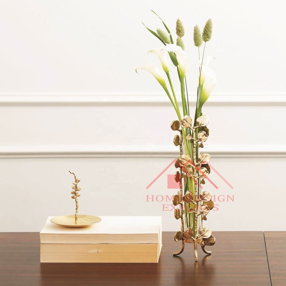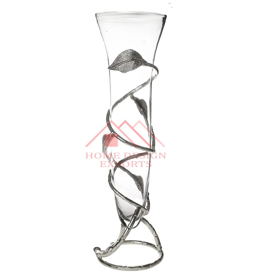 latest Design Wedding Decor Table Flower Vases for Table Centerpieces Unique Design Metal Nickel Plated Tall Trumpet Table Vases