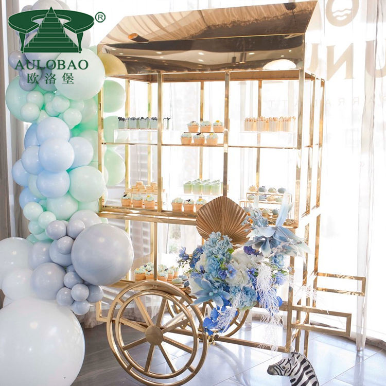 Wedding Decorations Gold Stainless Steel Mobile Candy Cart Display With Wheels