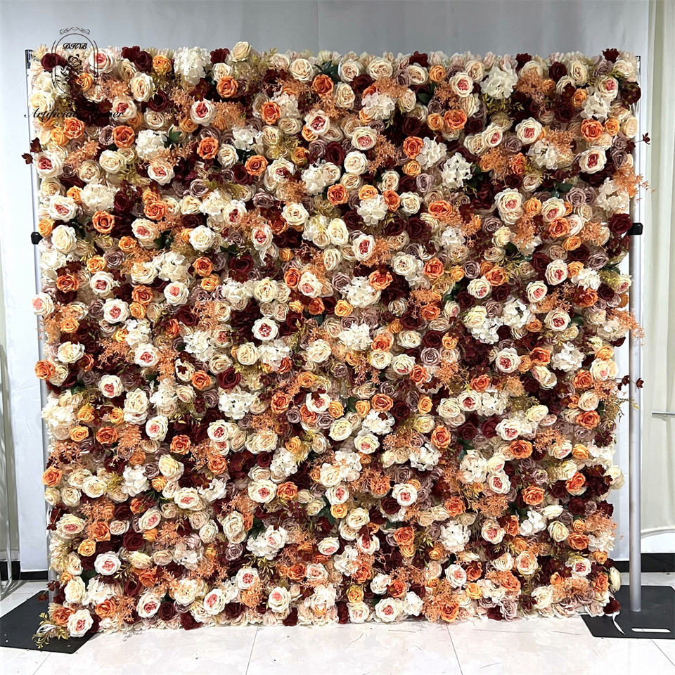 Wedding Decorations Roll-Up Artificial Flower Backdrop Curtain Panel Cloth Flower Wall for Party Decor