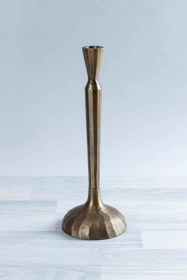Wedding Christmas Customized Handmade Stainless Steel Taper Candle Holder with Gold Antique Texture for Pillar Candle Home Decor