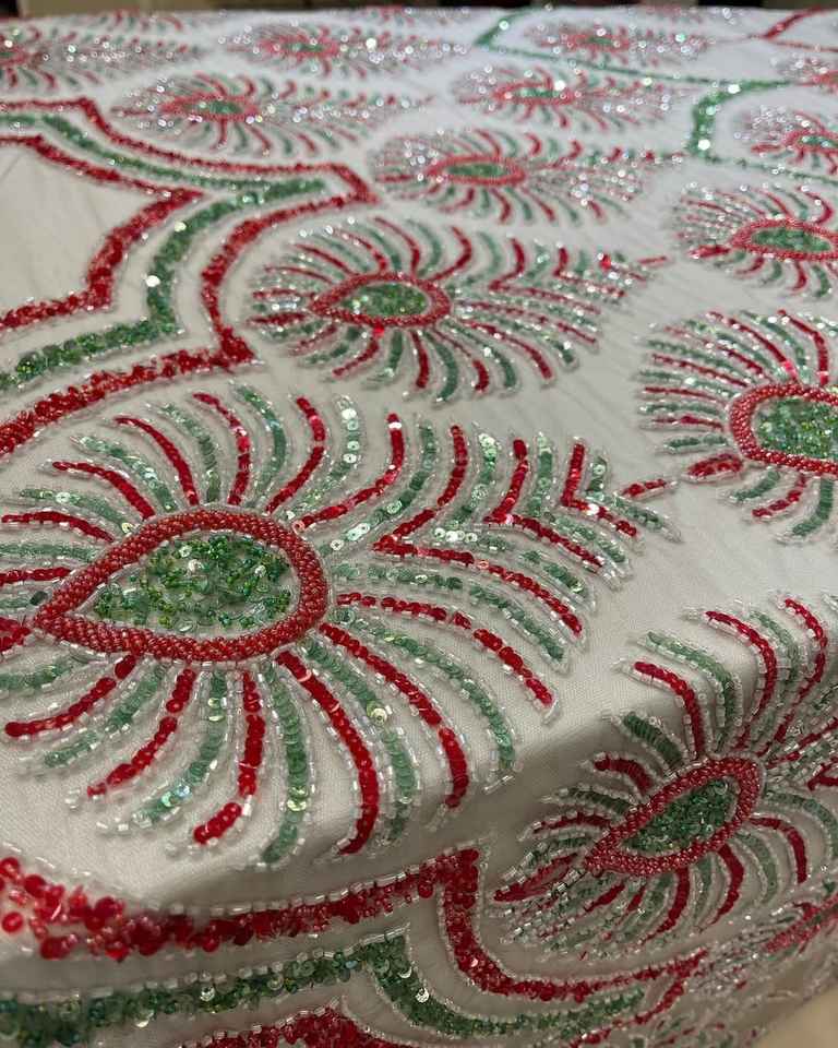 Wedding Dress Material Premium Hand Embroidered Mesh Lace with Beads and Sequins, High Quality
