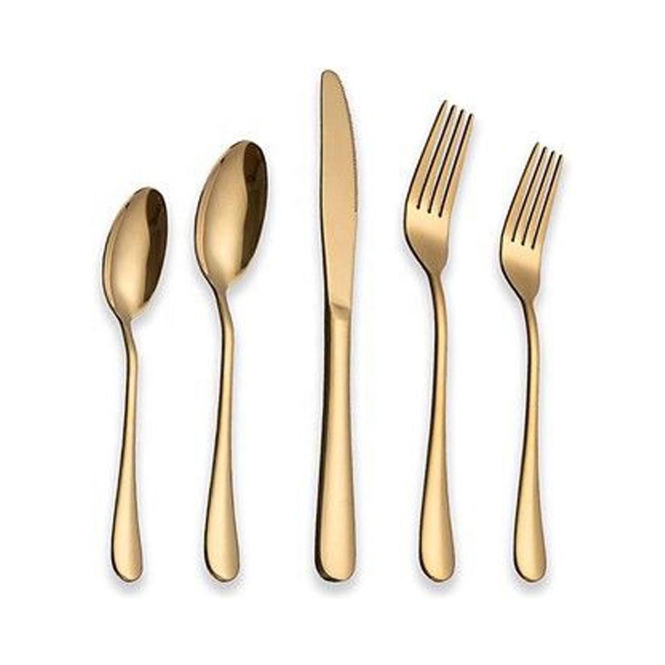 Wedding Flatware Set Gold Plated With Lining Design Flat Handle Stainless Steel Metal Knife Fork Spoon Gold Cutlery Set