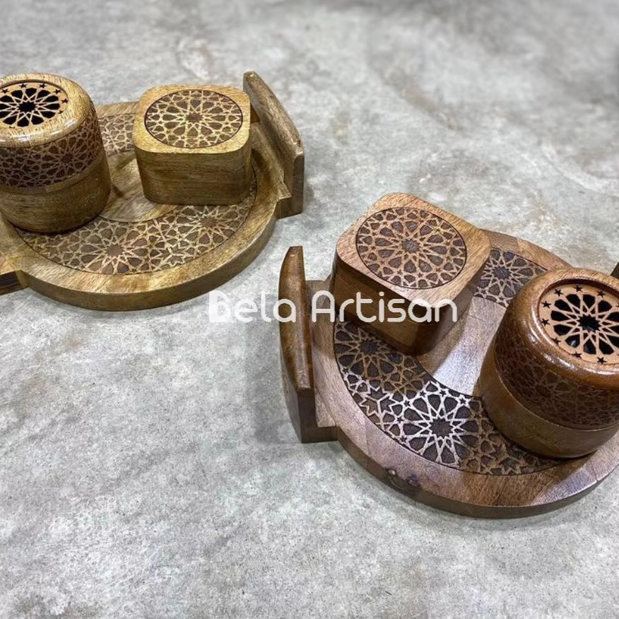 Handcrafted Wood Travertine Mubkhar Burner with Tray for Weddings and Ramadan Home Decor