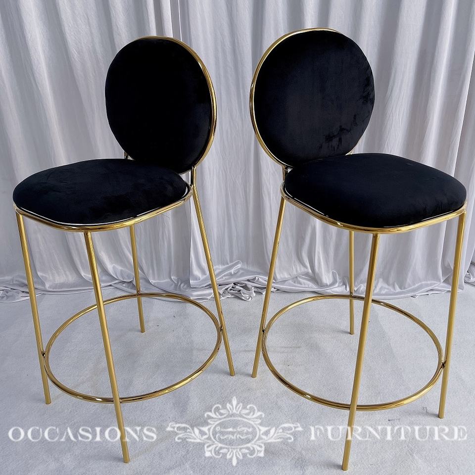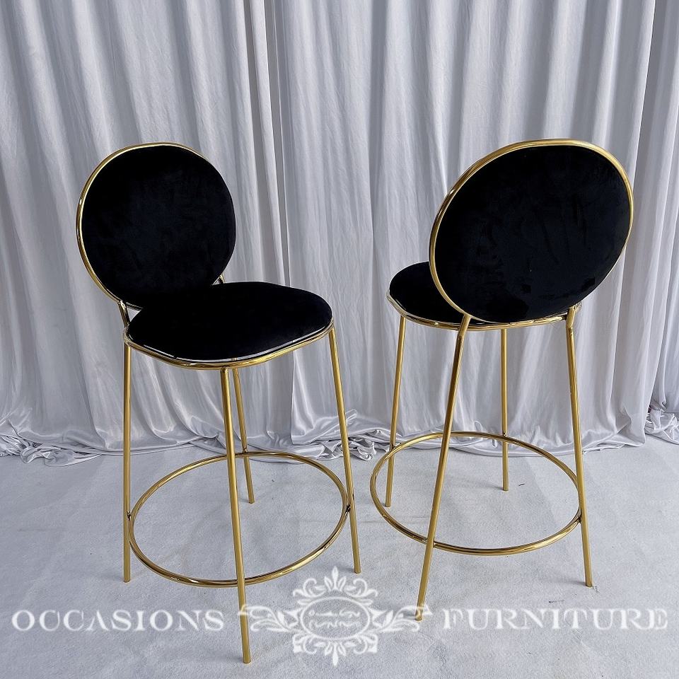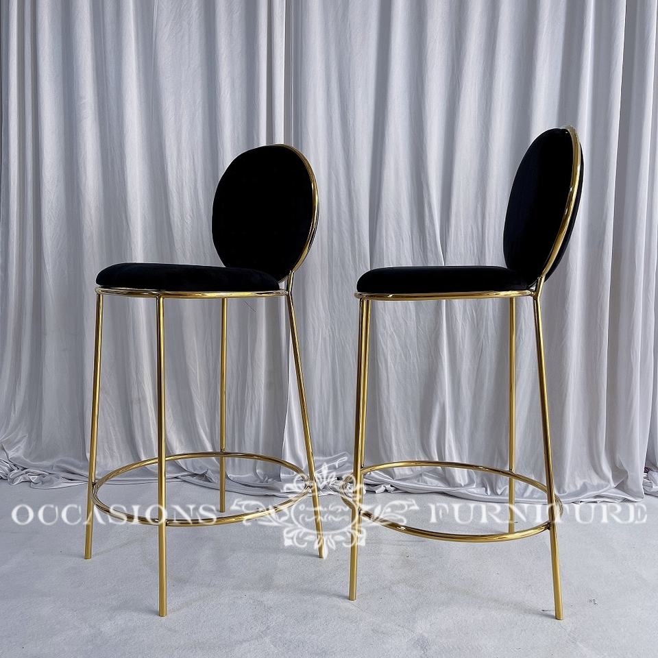 Wedding Golden Stainless Steel Bar Chair with Black Velvet Cushion High Cocktail Events Furniture Barstools